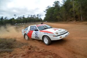 The event was also Round 2 of the hotly contested 2020 Queensland Novice Rally Series. At the End of Heat 1 there was an unassailable lead of 1:42 by Mitsubishi Starion driver Richard Harris with experienced co-driver Hugh Reardon-Smith. However, the contest behind them was fierce. Wessel Pieters and Jan Kraaij in a Subaru WRX holding second position on total time of 15:27. Trailing by 26s and sharing third place were Kirsty Wedding and Mark Malpas (Chrysler Lancer) and Gary Dutton and Giles Harris (Toyota Celica TA22). Ready to pounce only 9s behind was Matthew Dolan and Alex Cherry (Holden Gemini) and a further 6s Emily Jackson and Niall Cassidy (Hyundai Excel). Unfortunately, series leaders Krystle Power and Brad Hurford slid wide into the scenery, failing to finish.