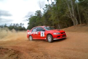 Ian Menzies and Bob McGowan have won the KCF Rallysport Short Course Challenge – Burnett Sprint #2. The pair had a trouble-free return to rallying in their Mitsubishi Evo IX, with a close tussle amongst the elite, snatching victory in the very last stage.